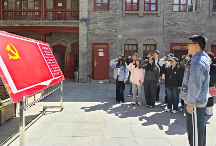 参观学习结束后,齐月宁同志带领全体同志在故居前重温入党誓词。在齐月宁同志的领誓下,全体同志庄严地举起右手,重温入党誓词。一句句铿锵有力的誓词,表达了大家对党的忠诚和对革命事业的坚定信念,也激励着每一位同志在今后的日子里,时刻以党员的标准严格要求自己,发挥先锋模范作用。